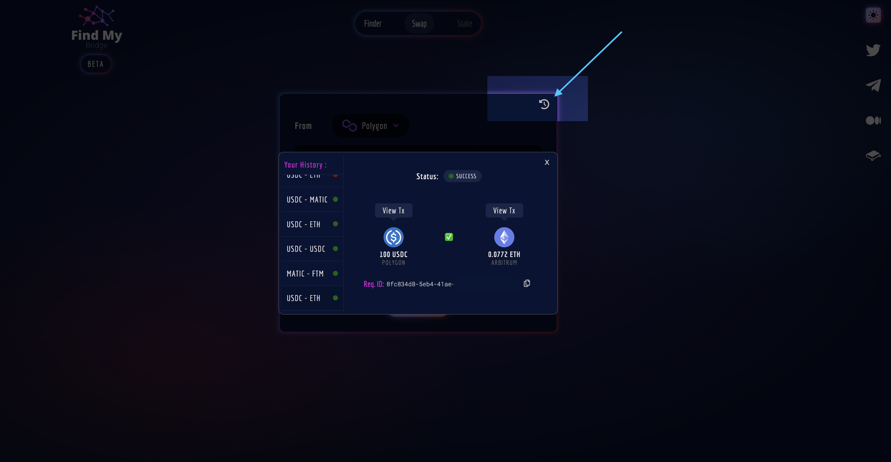 You can also check your transaction history by clicking the time icon