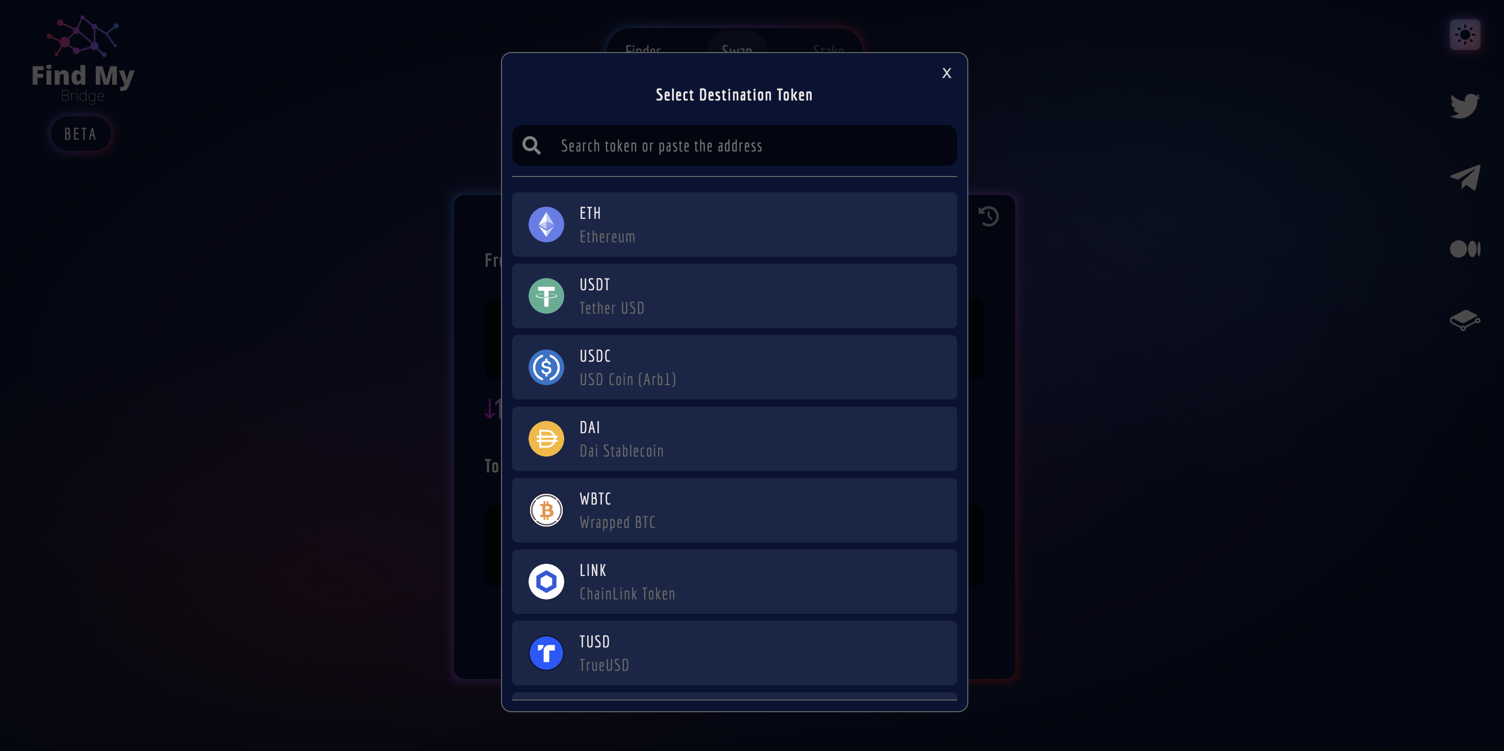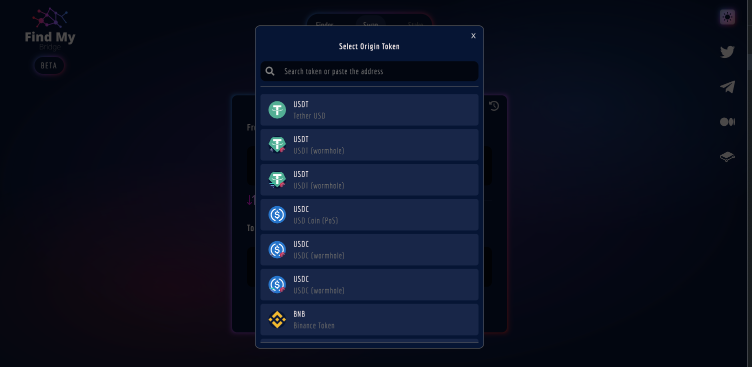 Scroll or use the search bar to find the tokens you wish to swap or bridge.